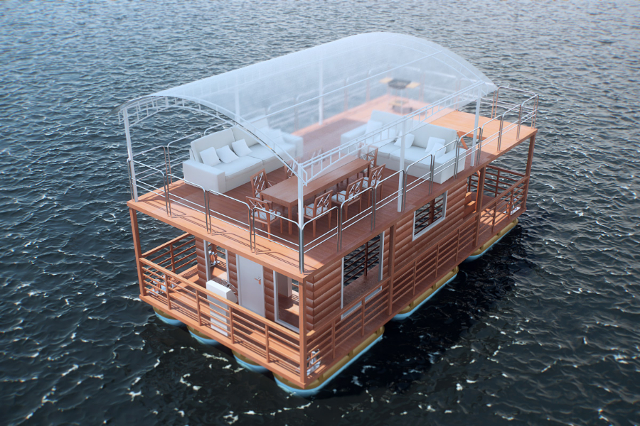 Обычно такой дом представляет собой двухэтажную щитовую конструкцию. Плавучесть конструкции